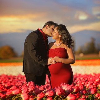 Maternity photo sessions are always a special and beautiful experience, capturing the glow and beauty of an expectant mother as she prepares to welcome her new little one into the world. Recently, I had the pleasure of photographing a stunning maternity session for a lovely couple in the breathtaking tulip fields at Skagit Valley, WA.